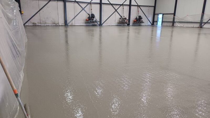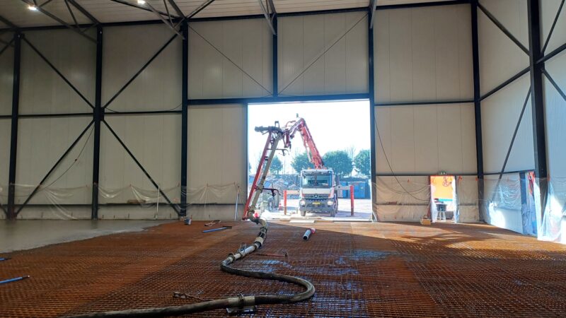 Het gaat om een stevige betonvloer van maar liefst 1000 m², speciaal ontworpen voor het zware werk. Op deze vloer zullen dagelijks zware machines en materieel komen te staan waarbij extra draagkracht essentieel is.